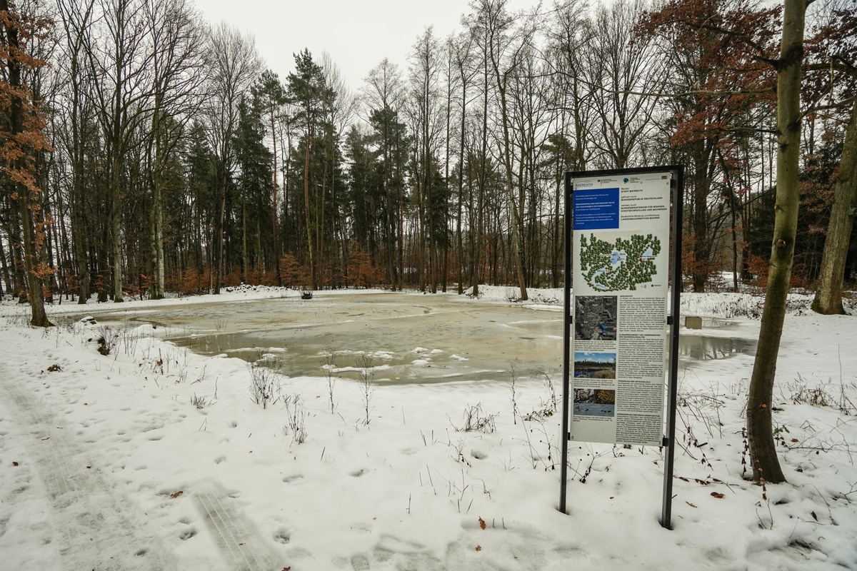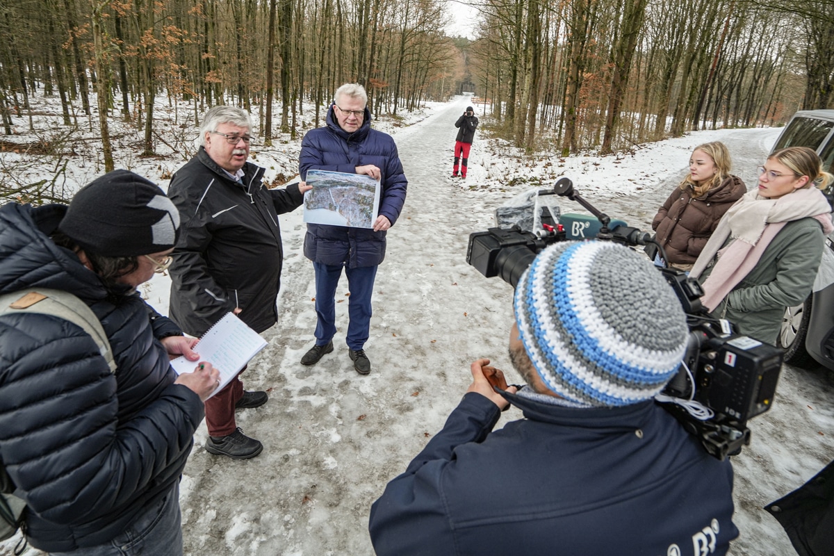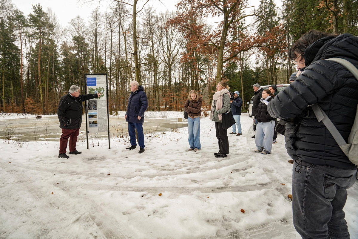 Die Stadt Bayreuth hat Anfang vergangenen Jahres das Projekt zur Wiederherstellung der historischen Teiche und Feuchtgebiete im Studentenwald gestartet. Bei einem Medientermin am heutigen Mittwoch (14. Januar 2026) informierten die Projektverantwortlichen des Stadtgartenamtes gemeinsam mit Oberbürgermeister Thomas Ebersberger vor Ort über den aktuellen Stand der Umsetzung – und konnten dabei auch gleich noch eine Auszeichnung vermelden.