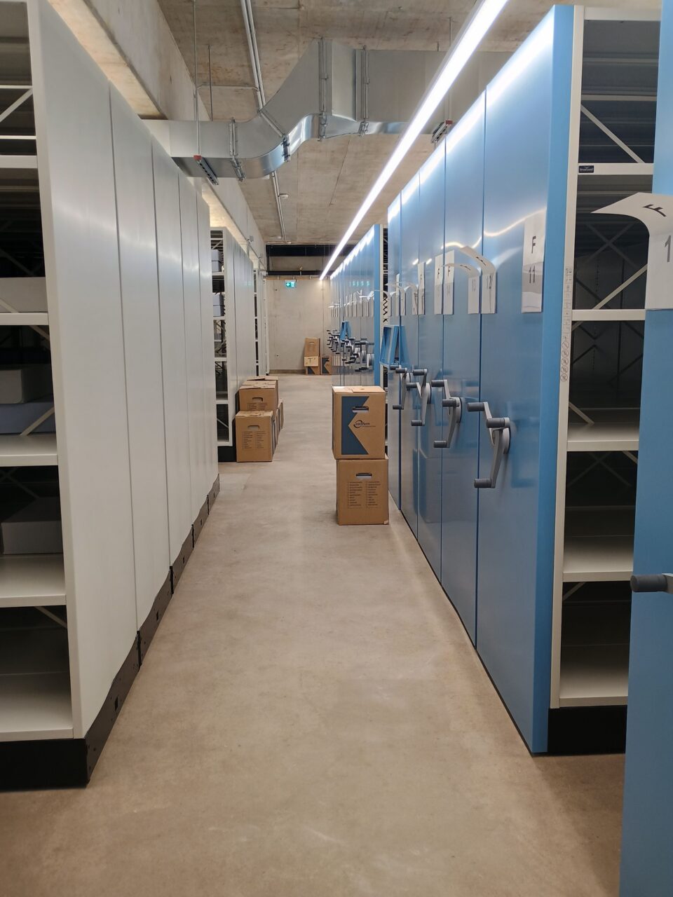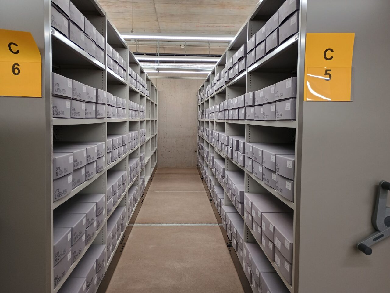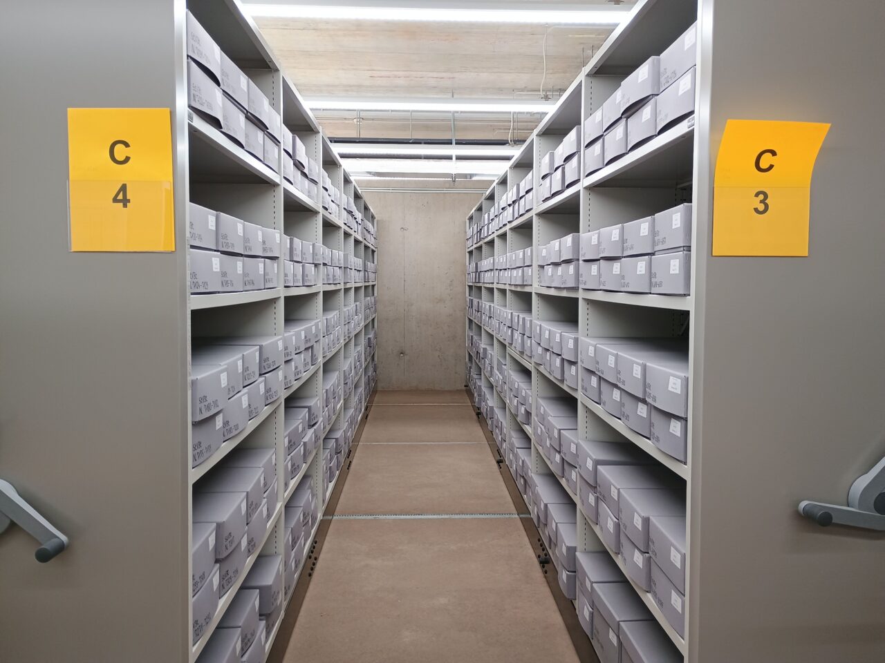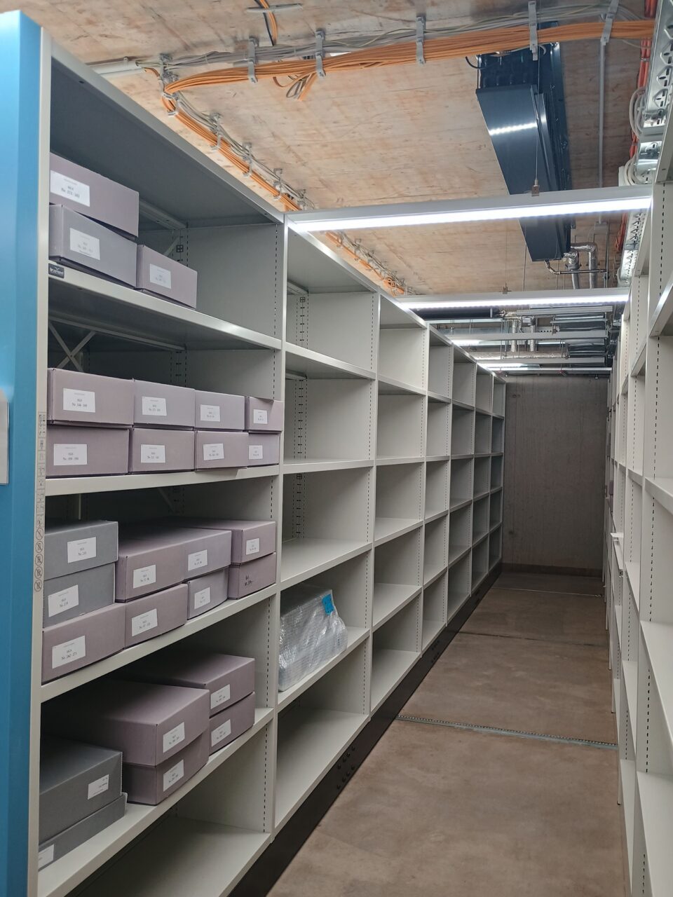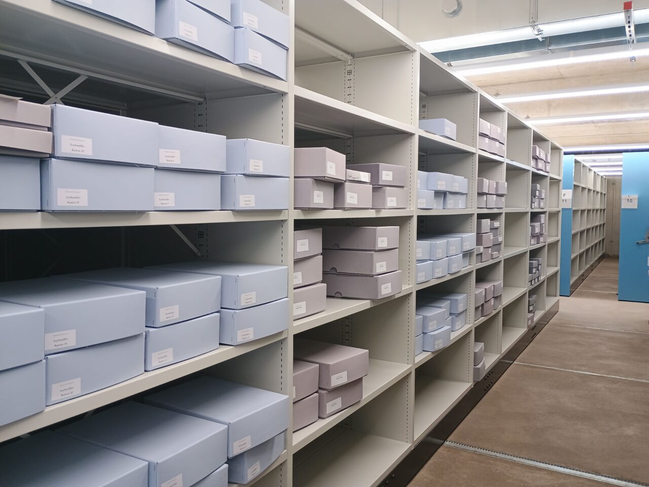 Anschließend konnten alle Magazinblöcke virtuell belegt werden, damit das Auspacken des Archivguts zügig ablaufen kann und wir möglichst bald nach dem Umzug wieder den Normalbetrieb aufnehmen können.