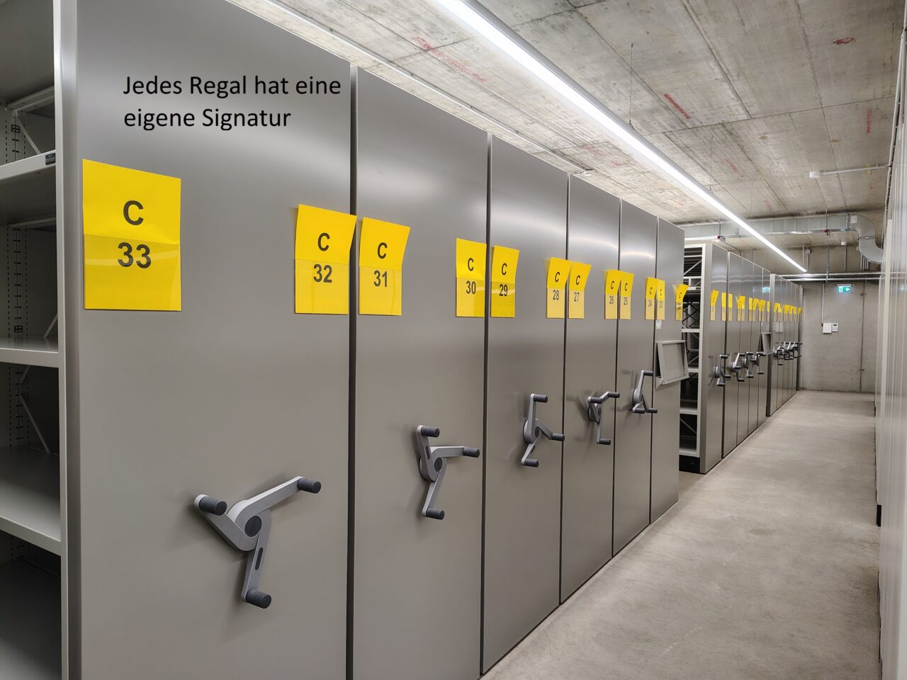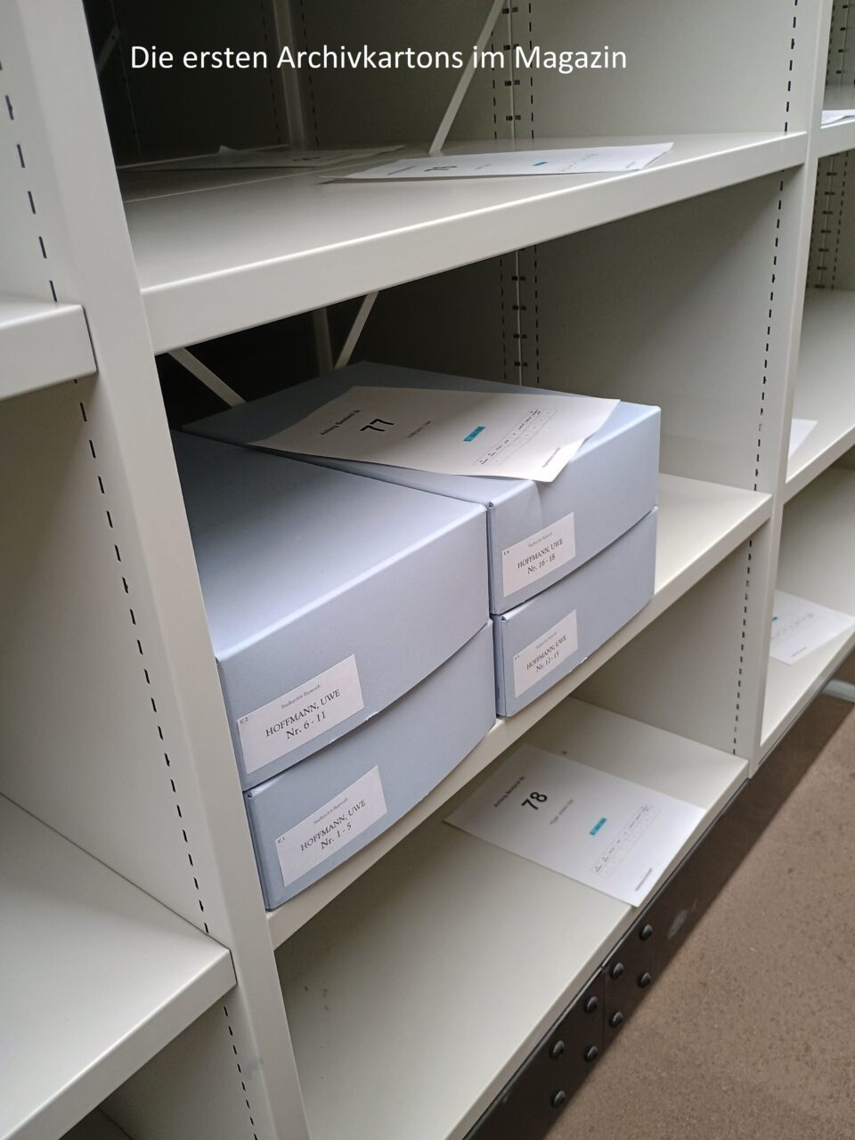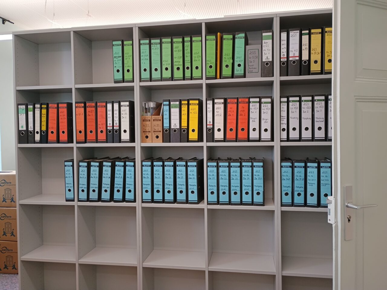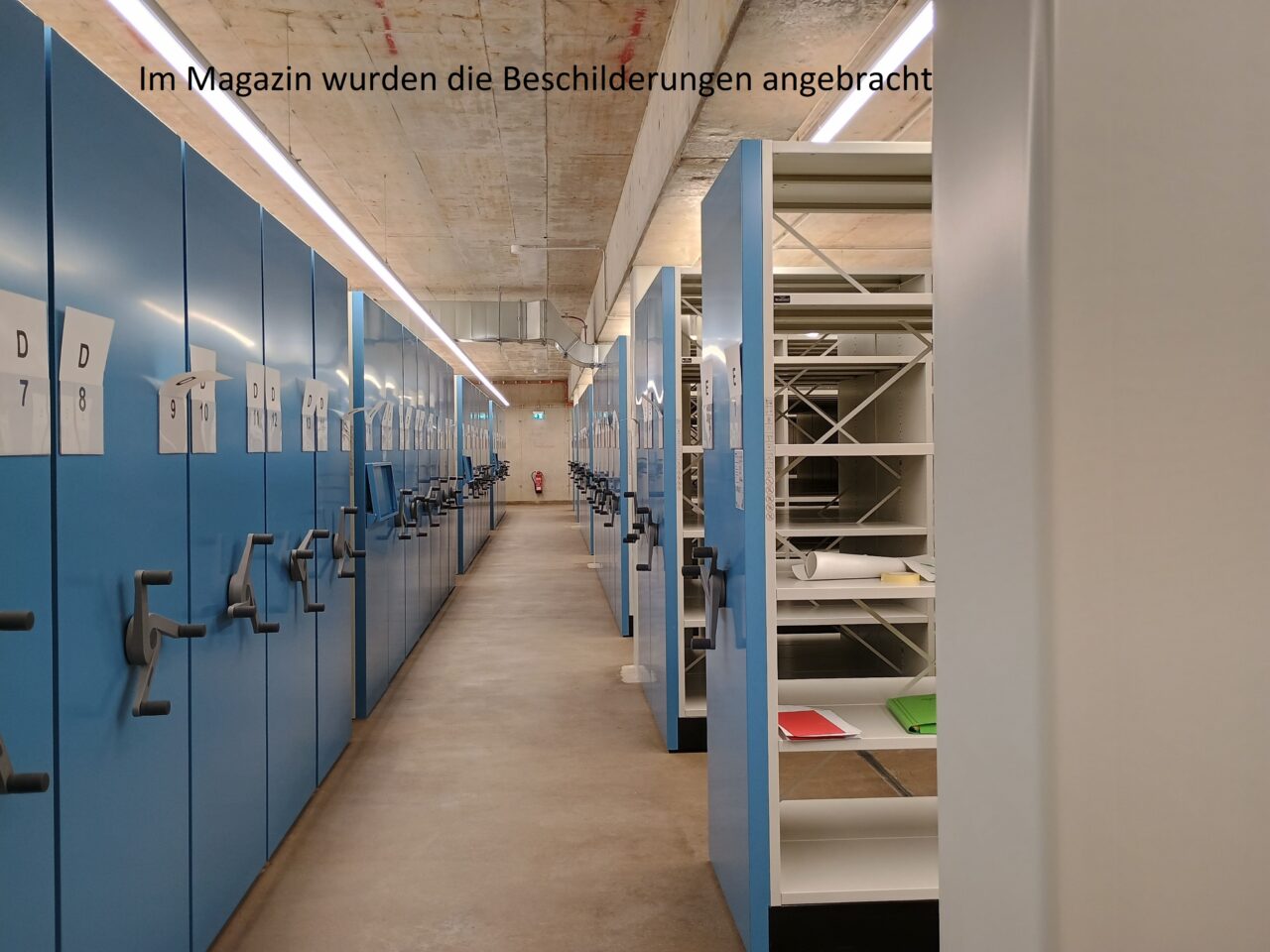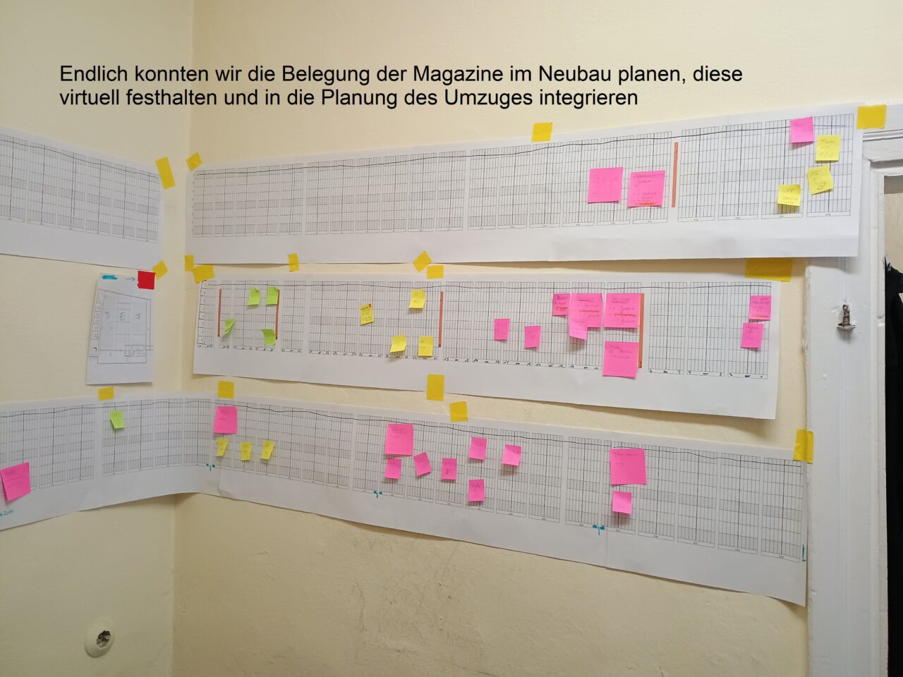 Anschließend konnten alle Magazinblöcke virtuell belegt werden, damit das Auspacken des Archivguts zügig ablaufen kann und wir möglichst bald nach dem Umzug wieder den Normalbetrieb aufnehmen können.