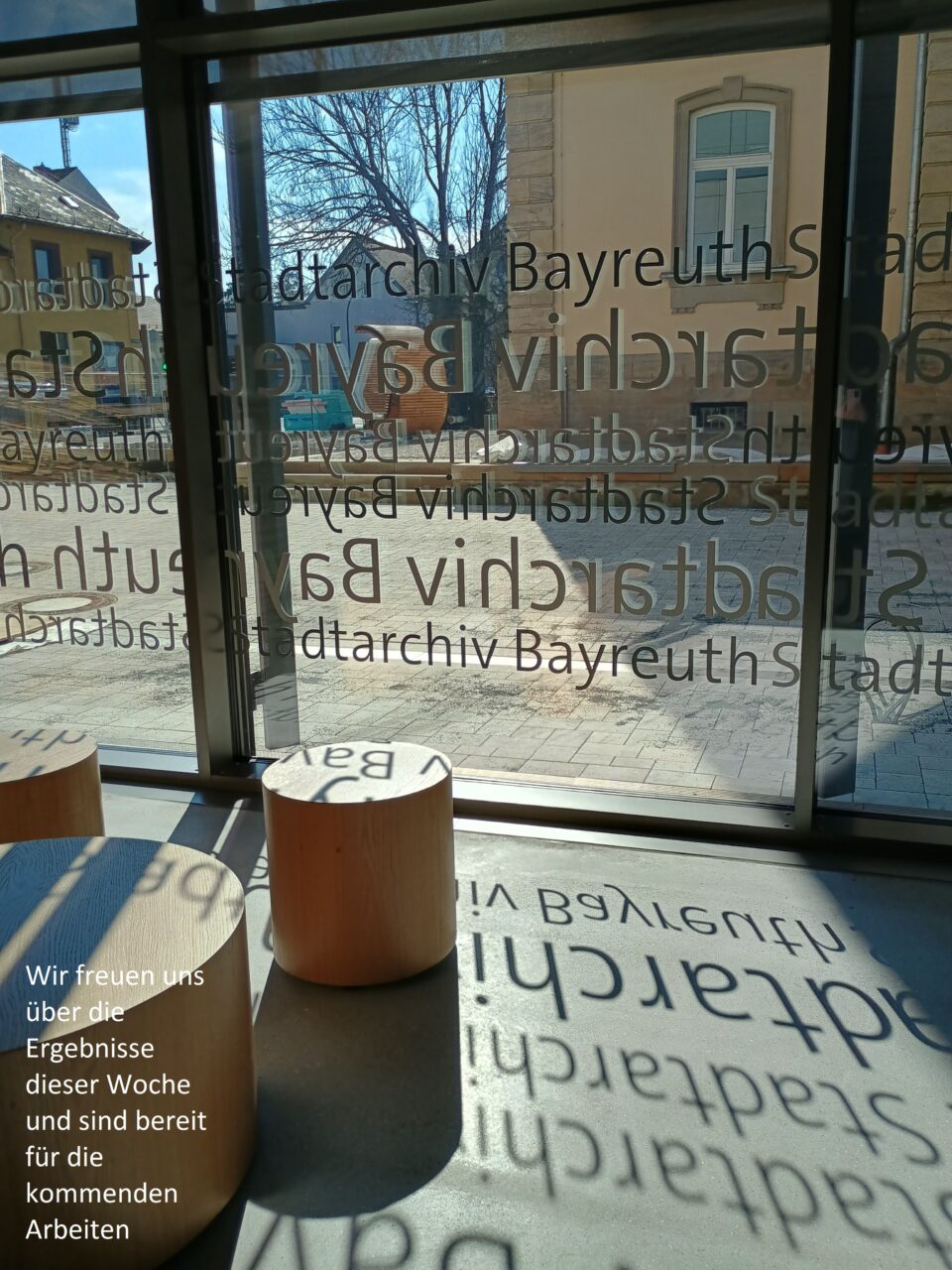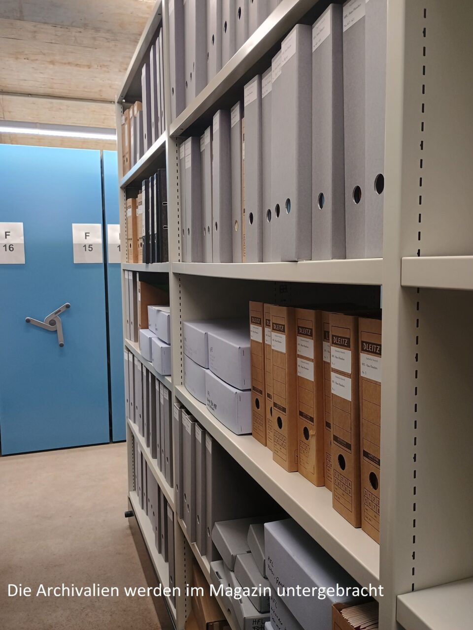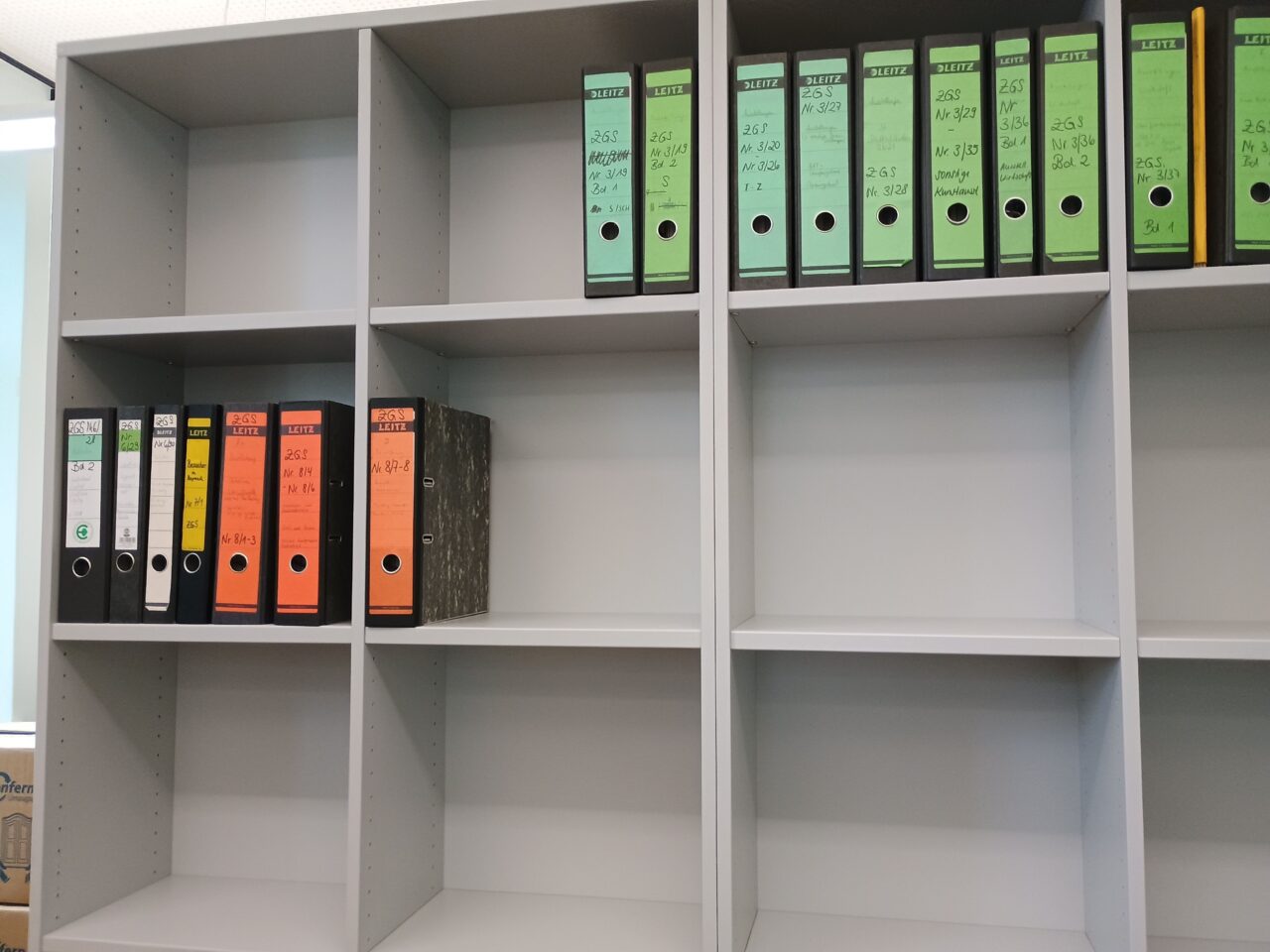 In den darauffolgenden Wochen teilte sich unser Team auf die beiden Standorte auf. Der eine Teil packte am Neubau die Bibliothek, die Zeitgeschichtliche Sammlung sowie einige Archivalien in die dafür vorgesehenen Magazine und Büros. Das andere Team packte weiter Kartons am alten Standort. Weiterhin laufen die Vorbereitungen für den Umzug des Archivguts, der in der Woche vom 23. bis 27. in die nächste Runde geht.