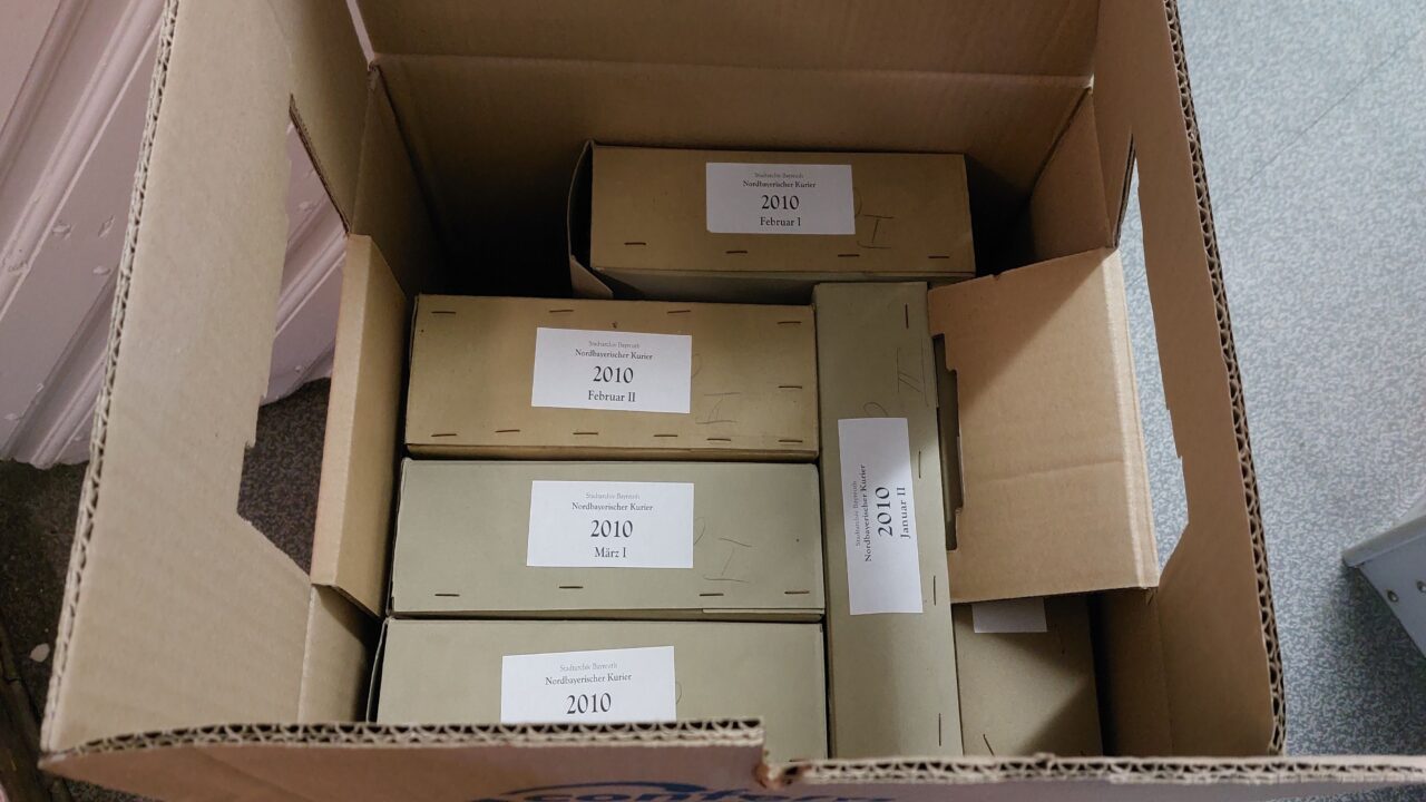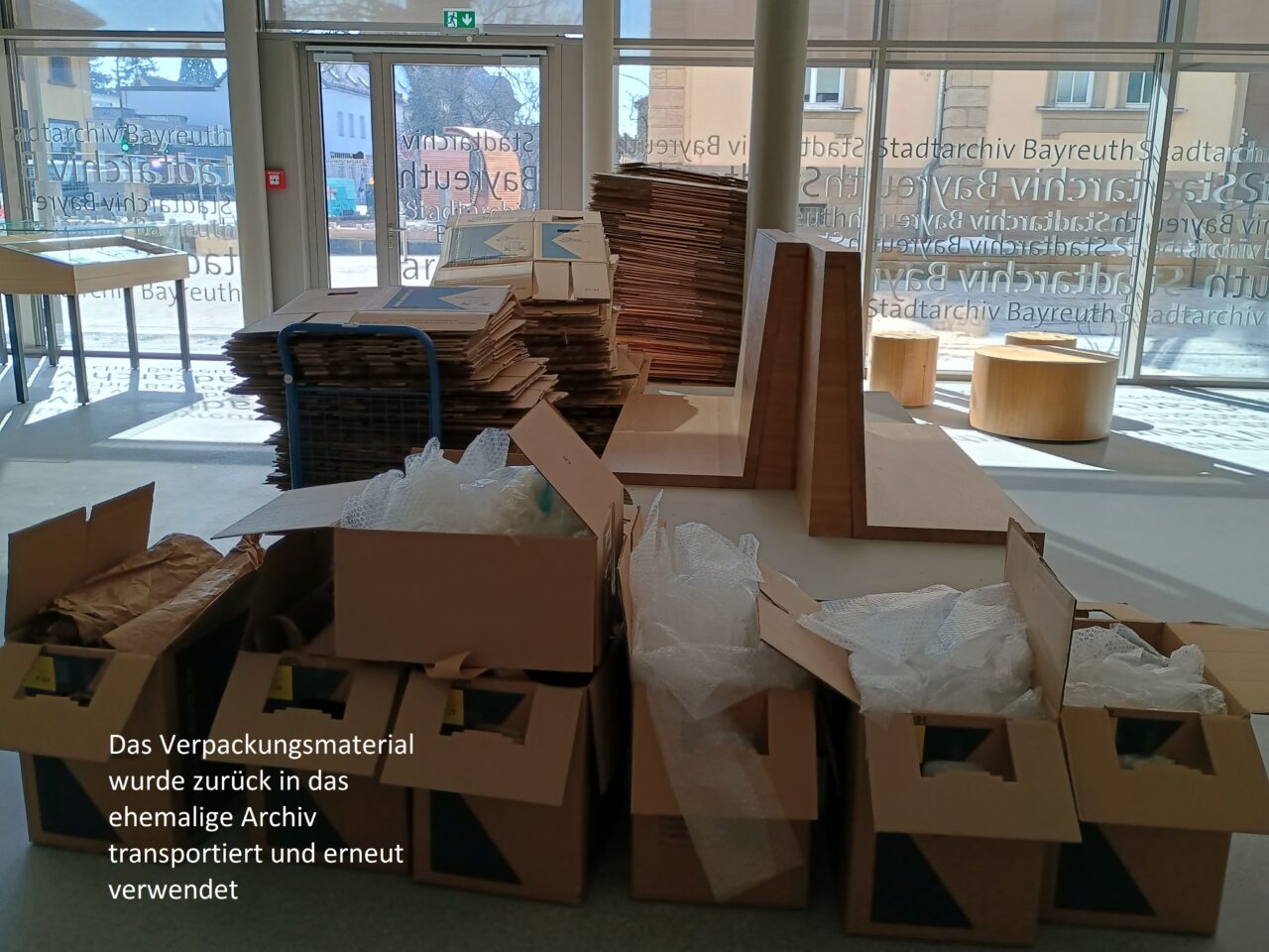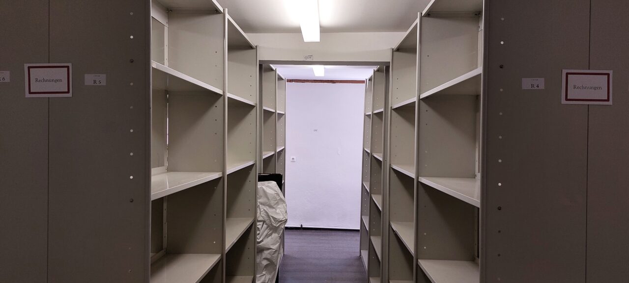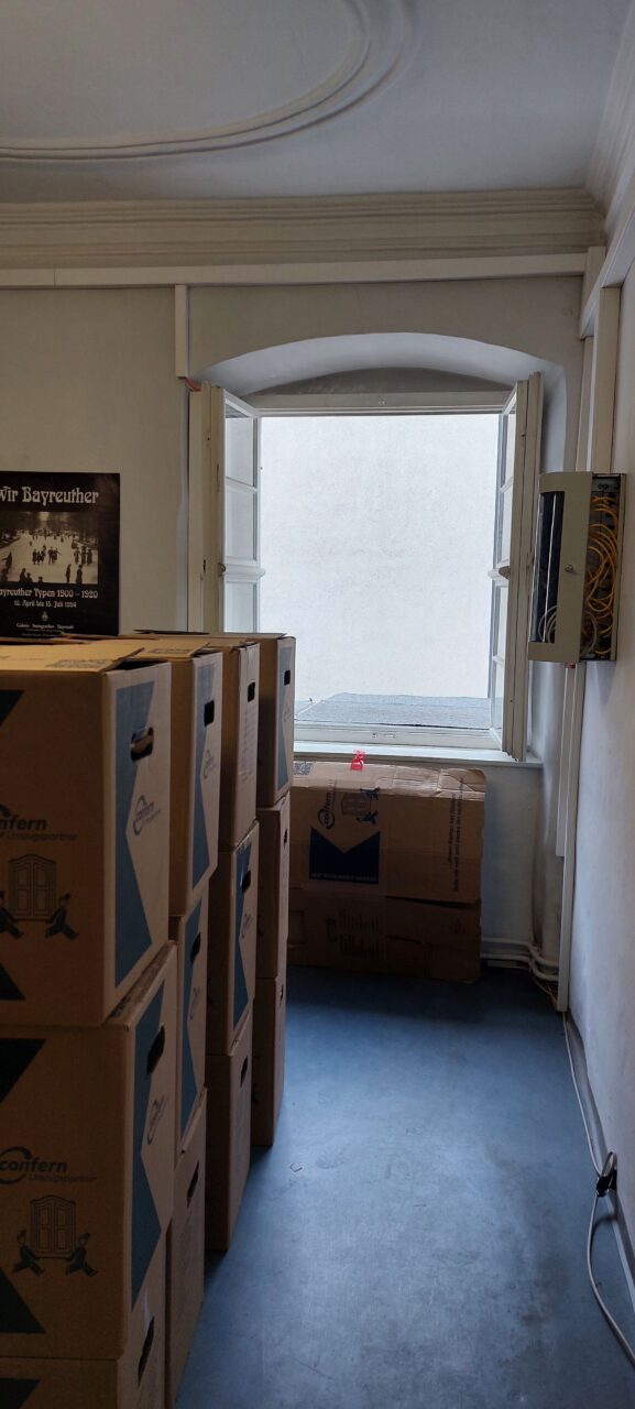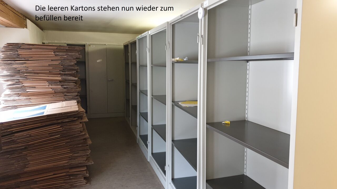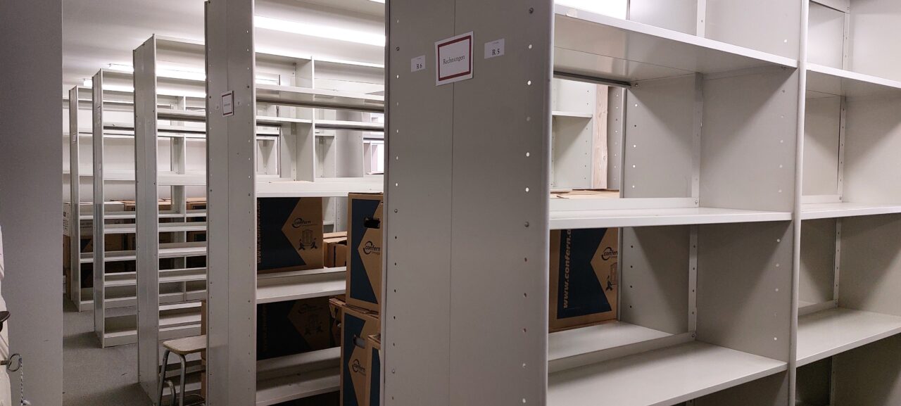 In den nächsten Wochen werden die letzten Großformate und Büromaterialien aus dem ehemaligen Archiv verpackt und transportiert. Außerdem findet das Archivgut aus unserem Außenlager endlich seinen Weg zurück in die dafür vorgesehenen Magazine.
