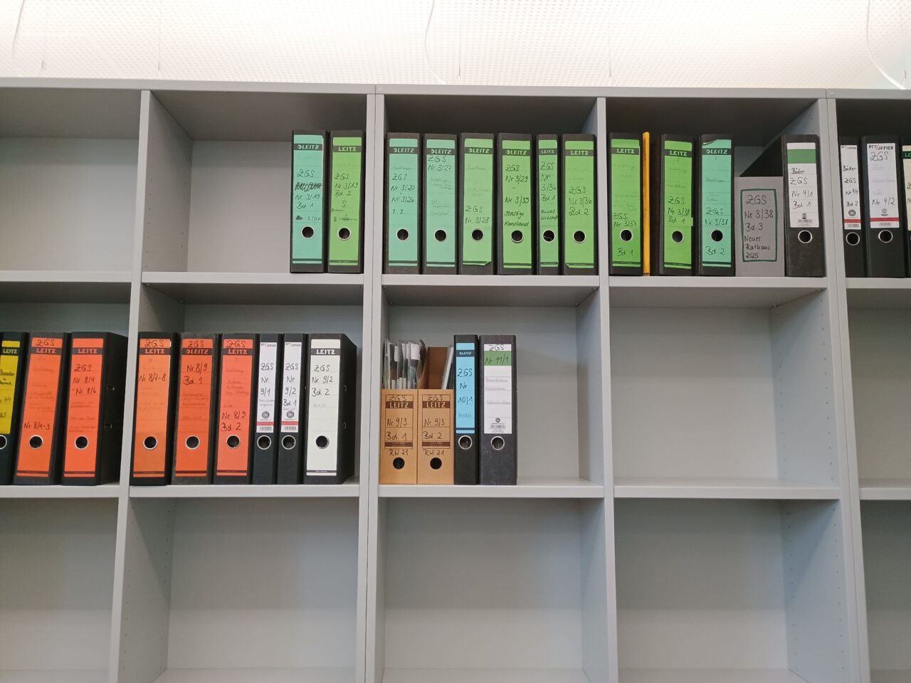 Außerdem hatte die Planung der zeitlichen Abfolge des eigentlichen Umzugs und die Magazinbelegung im Archivneubau Priorität. Zunächst mussten für die Regalfächer die exakten Mengen der Bestände berechnet werden, um auf diese verteilt werden zu können. Insgesamt haben wir Platz für 68.040 Archivboxen und damit 127.260 Aktenordner.