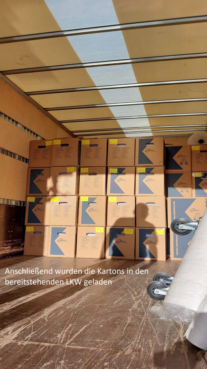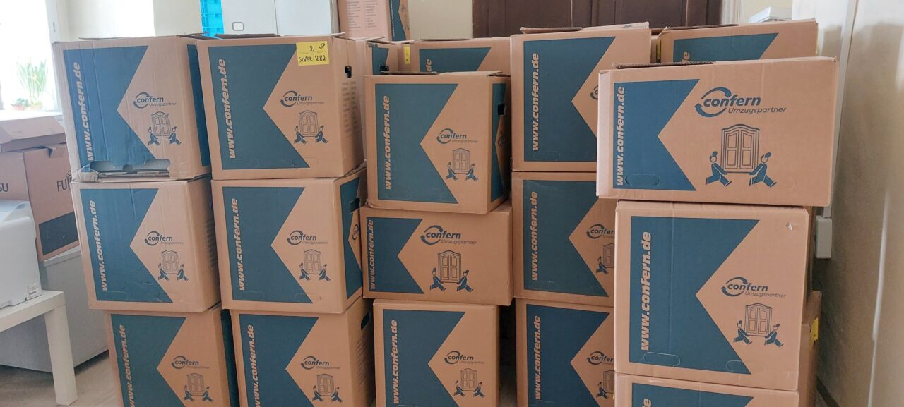 Insgesamt wurden weitere 347 Umzugskartons verpackt und den darauffolgenden Montag abtransportiert. Sie werden ebenfalls zunächst eingelagert, bevor sie in den Neubau gebracht werden.