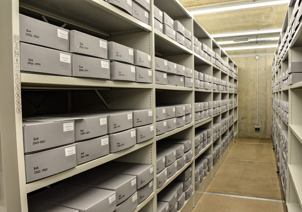 Die Besucherinnen und Besucher zeigten sich sehr angetan vom neuen Domizil des Stadtarchivs, das in der ehemaligen Leers`schen Jugendstil-Villa als Verwaltungsgebäude und dem daran anschließenden neuen Magazinbau untergebracht ist. In letzterem mit seinen 2.300 Quadratmetern Nutzfläche sind Rollregalanlagen mit Platz für Akten und anderes Archivmaterial von über elf Kilometern laufender Länge aufgestellt.